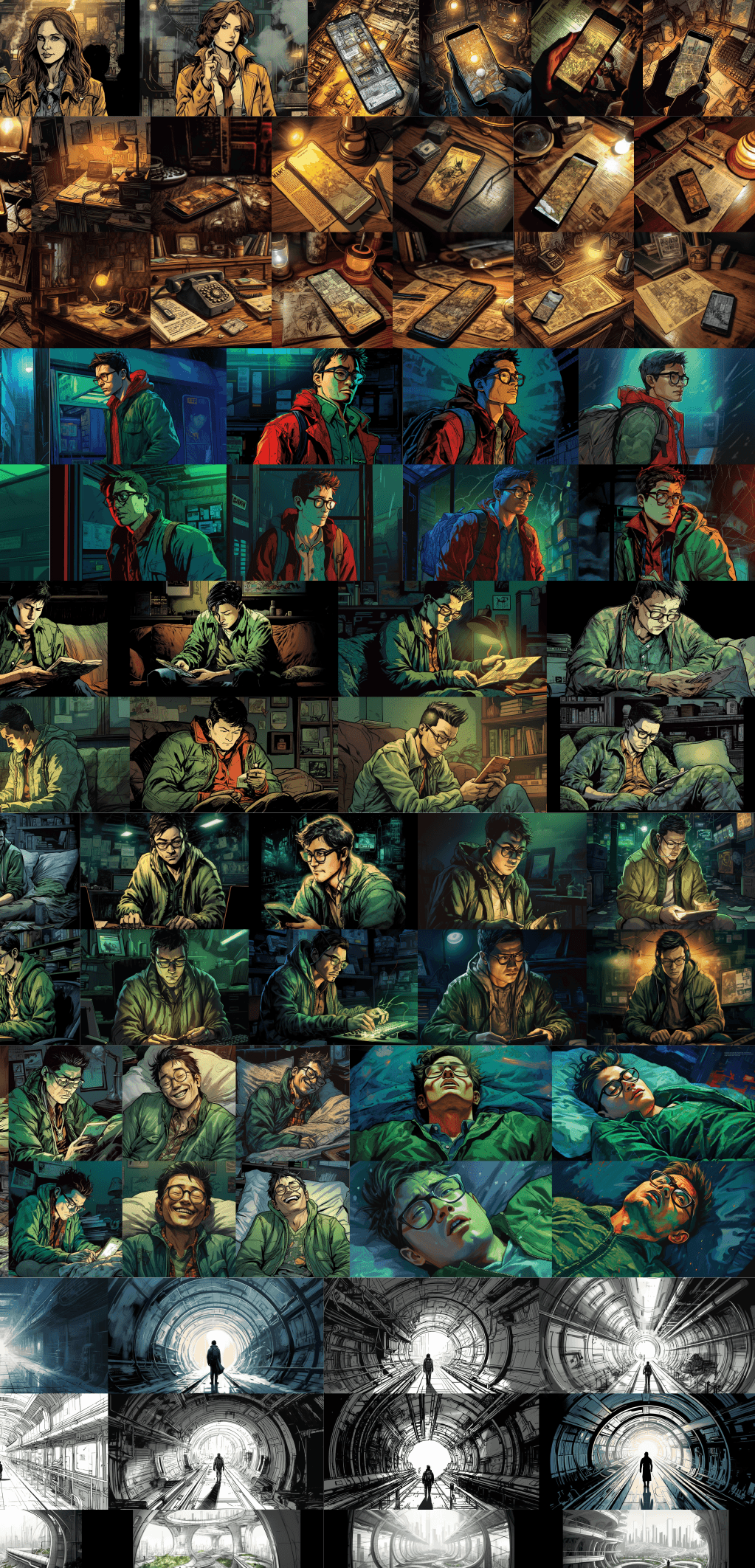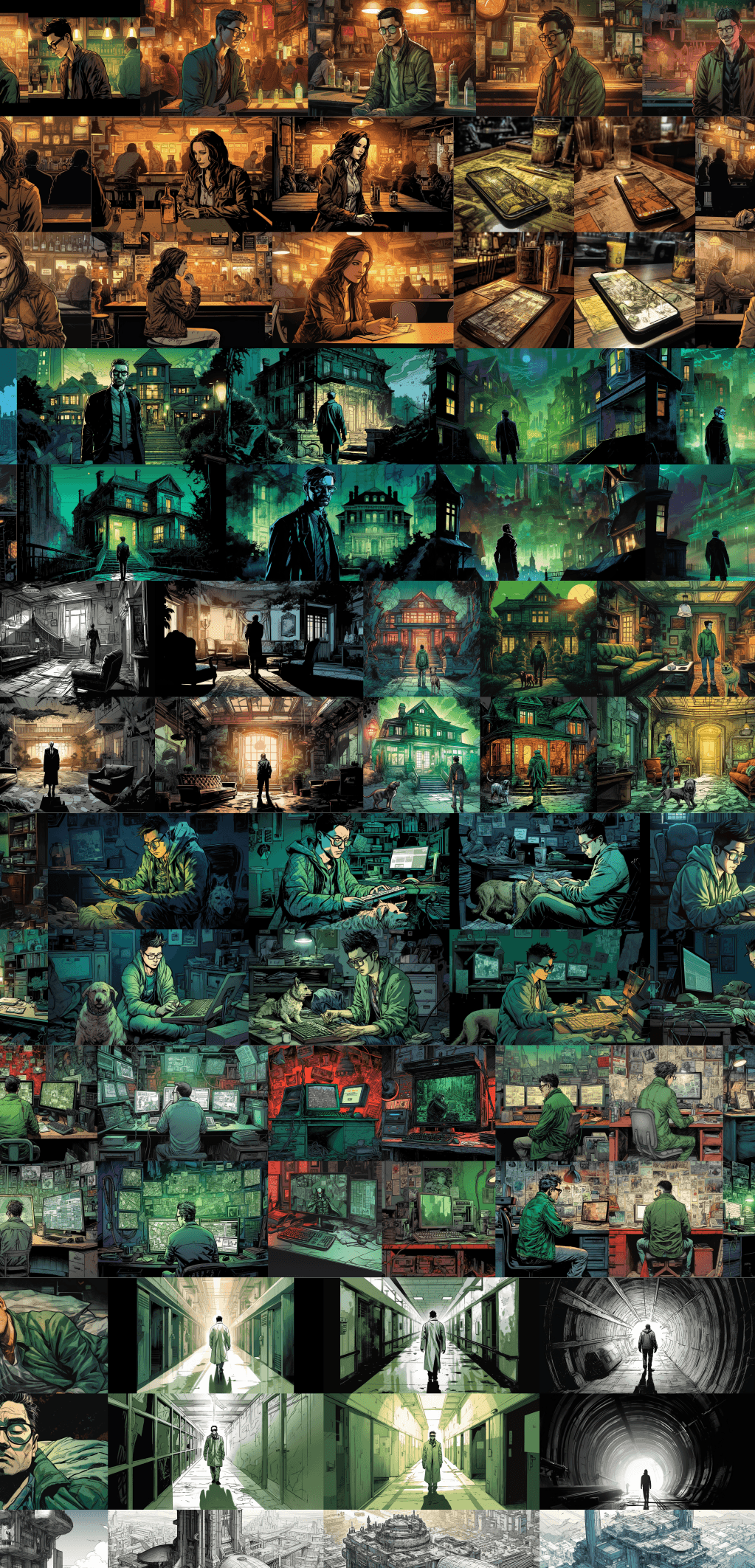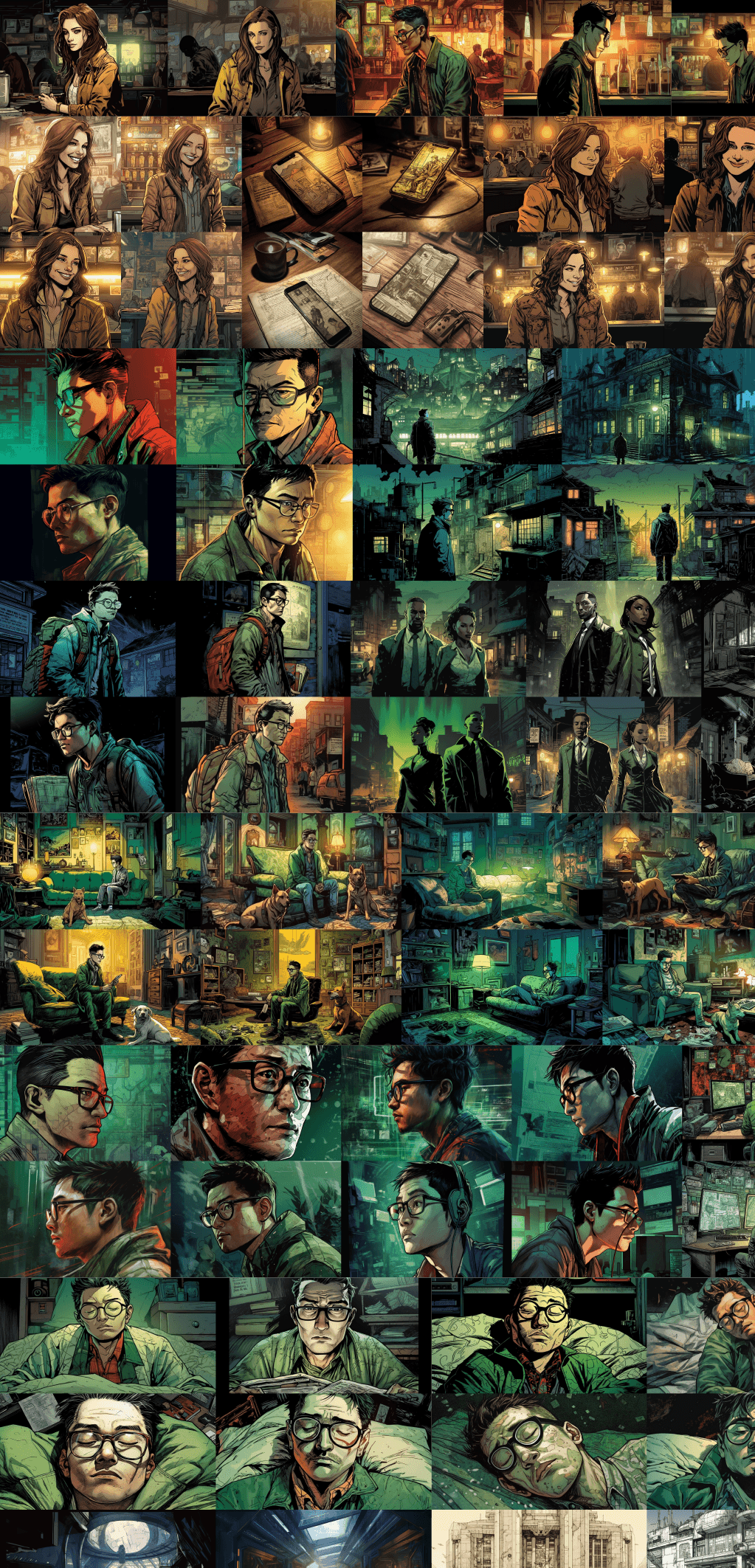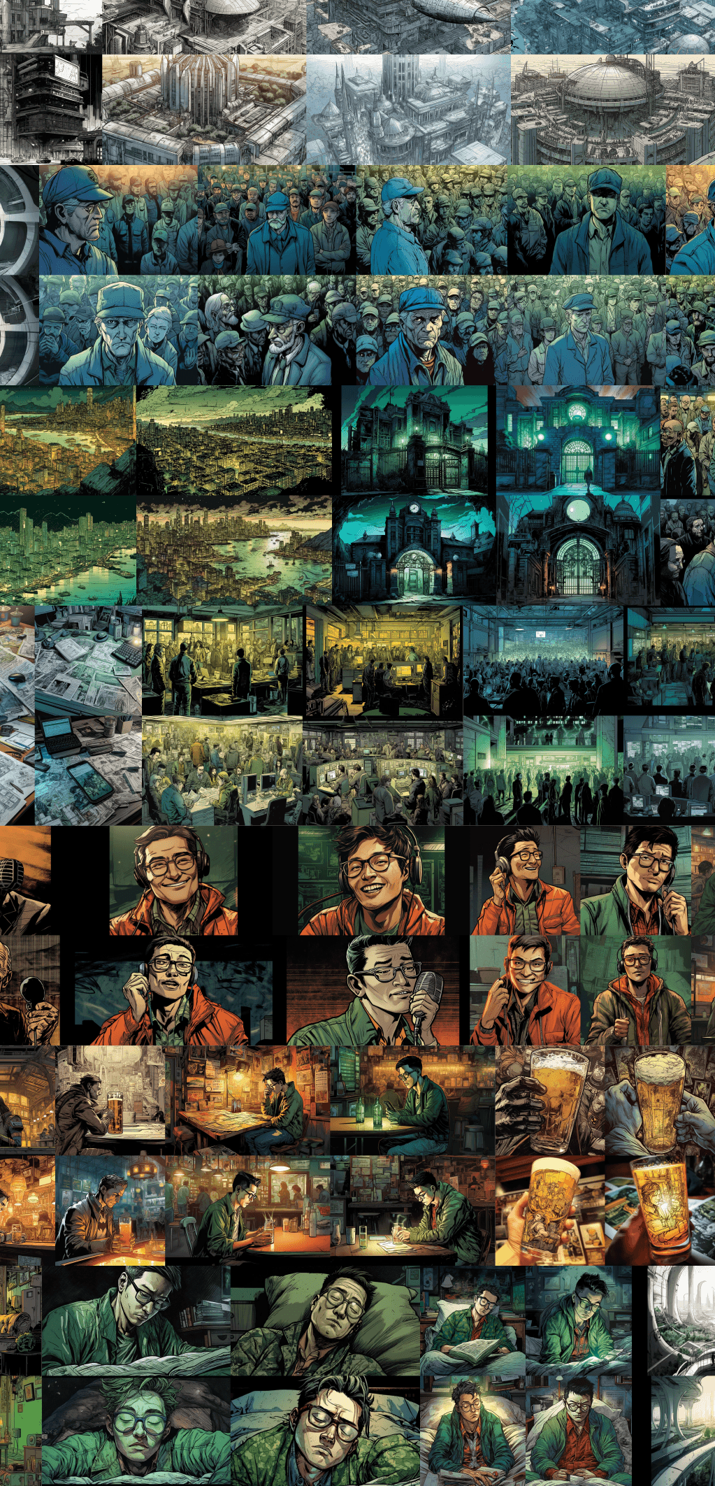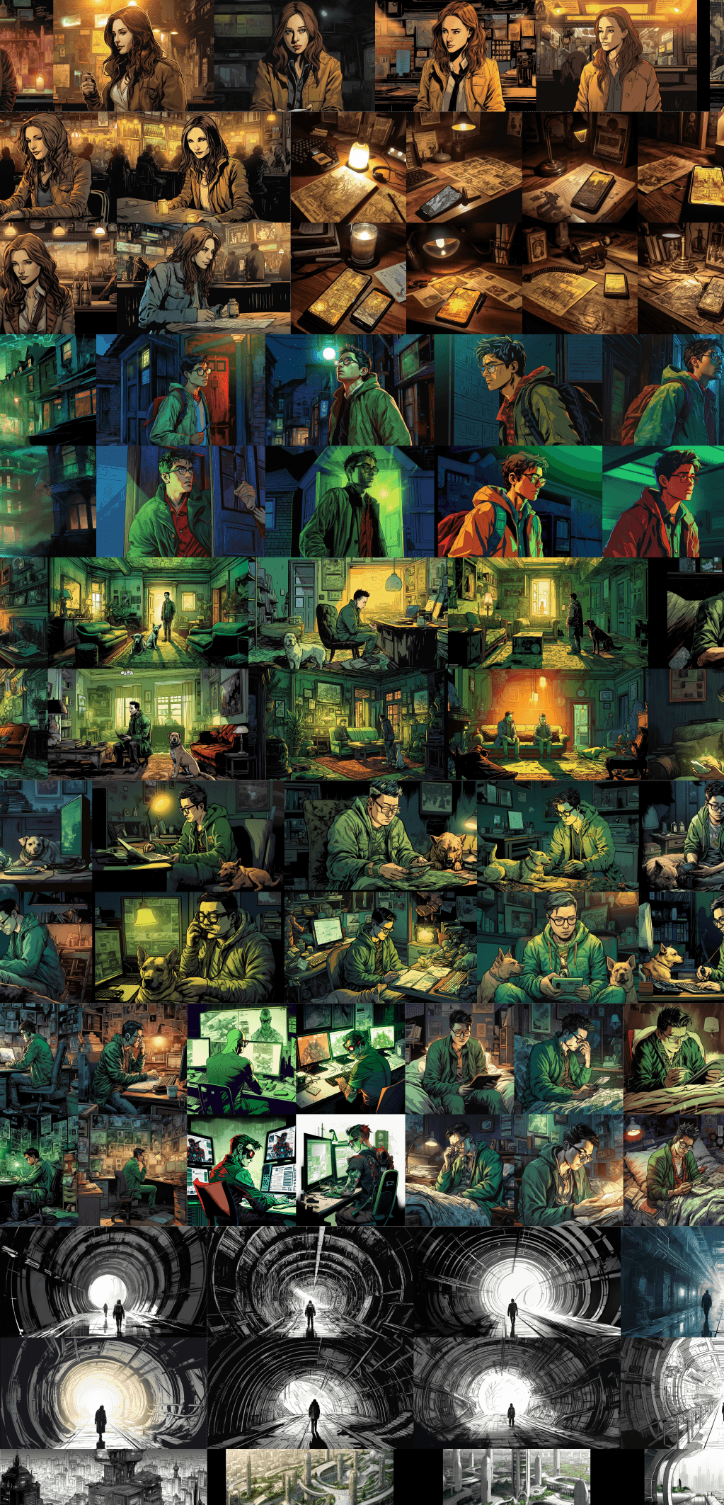 Some images needed to be a combination of two different prompt outputs + lighting altered.
