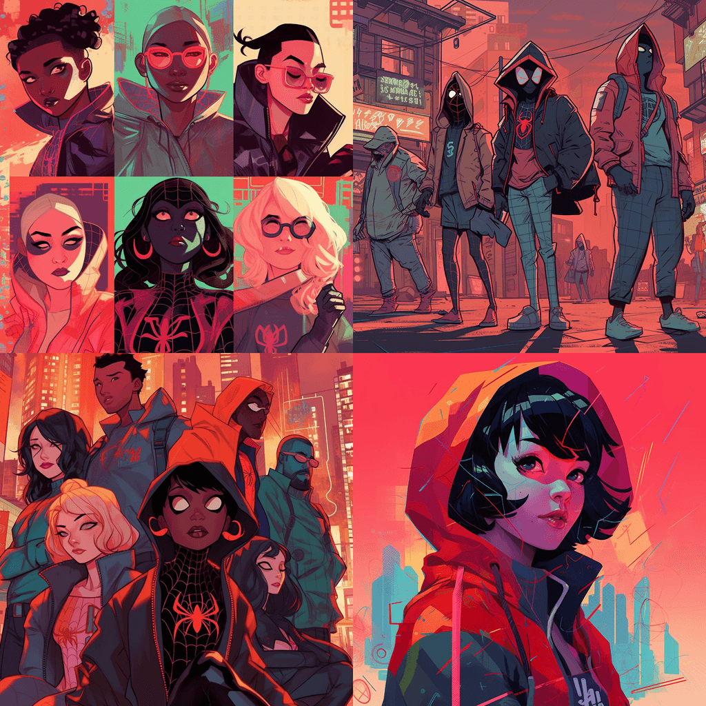 blend of Into the Spiderverse comic book art and line art --v 5 --s 750