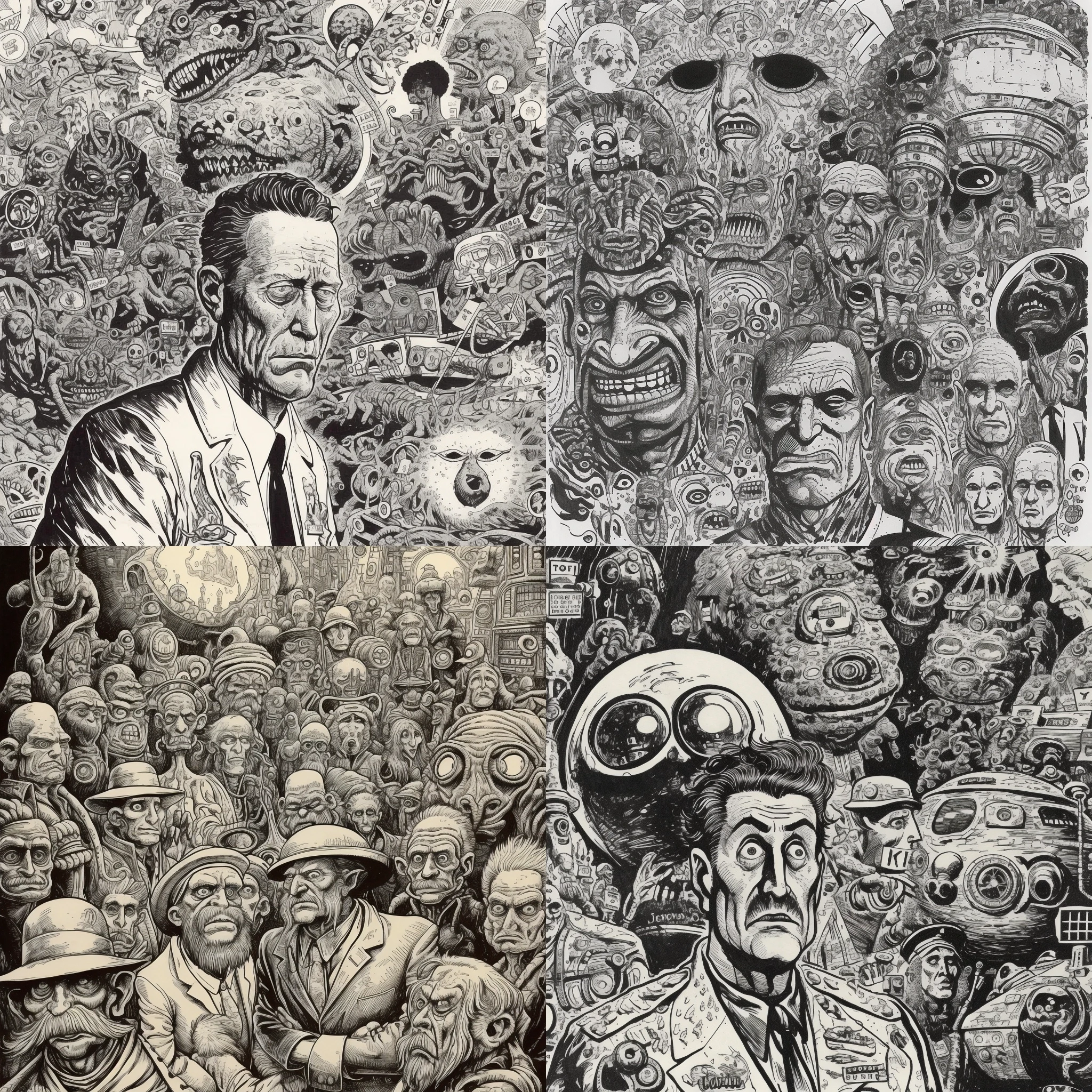 blend of Basil Wolverton comic book art and line art --v 5 --s 750