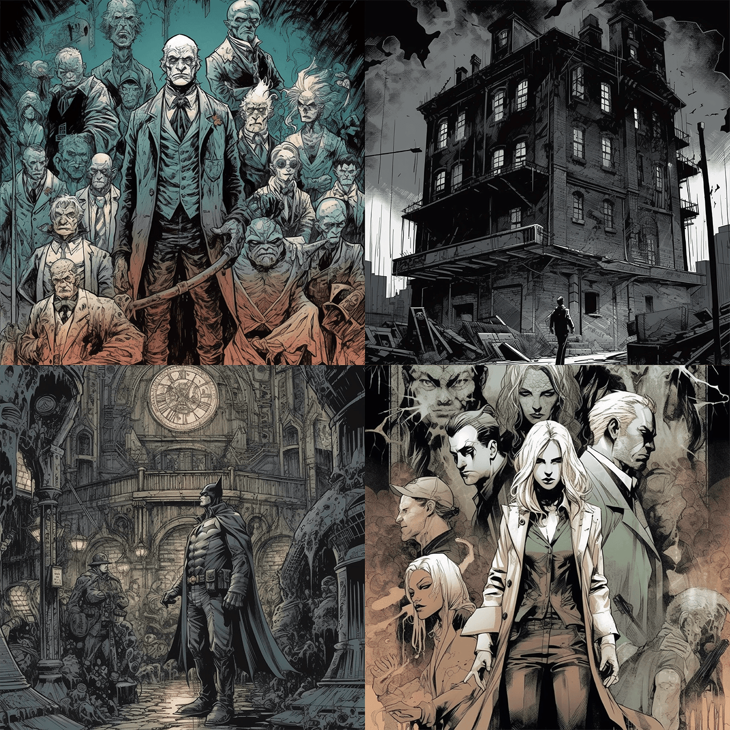 blend of Arkham Asylum comic book art and line art ::no Batman::-0.5 --v 5 --s 750